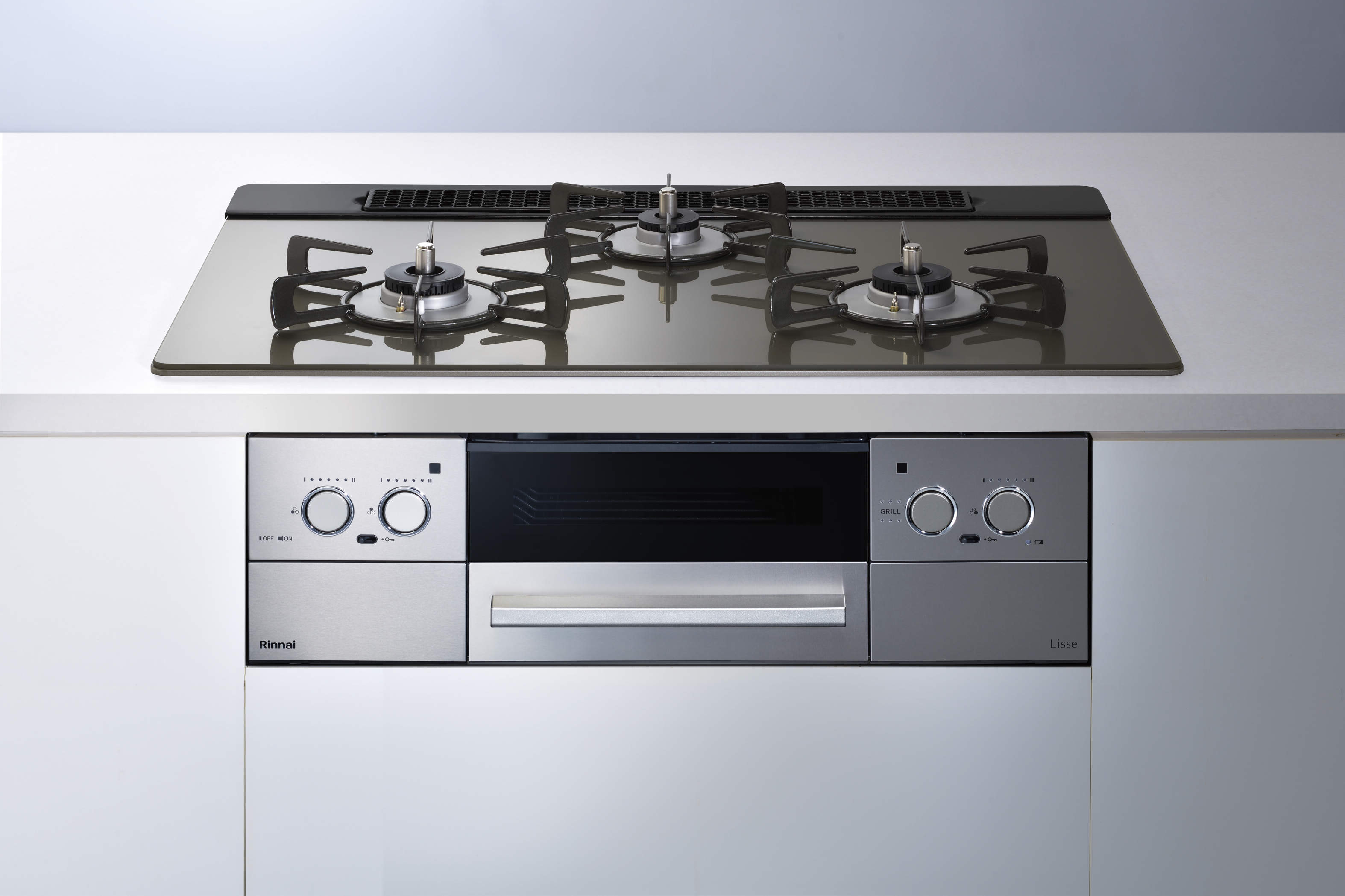 高硬度ガラスを一面に敷いたトッププレートはバーナー周りも段差がほとんどなく汚れが隙間に入り込みません!