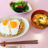 ガパオライス:実際選手たちに人気№1の栄養バランス満点メニュー サンラータン:黒酢はもちろん、野菜とキノコとたまごで栄養価の高いスープ サラダ:シャキシャキの生野菜とわかめ ドレッシングはオリーブオイルと男鹿の塩! ミルクプリン:牛乳を使ったやわらかい甘さと、ゴールドキウイをのせて疲れを癒す どれも色どりが良くて なによりとても美味しそう😋