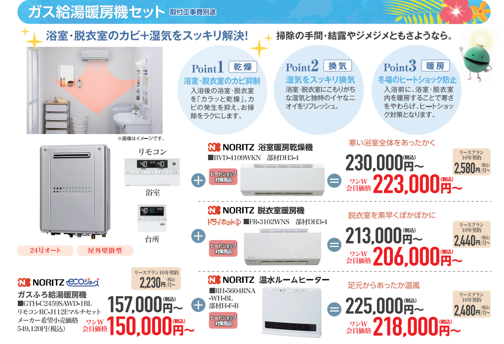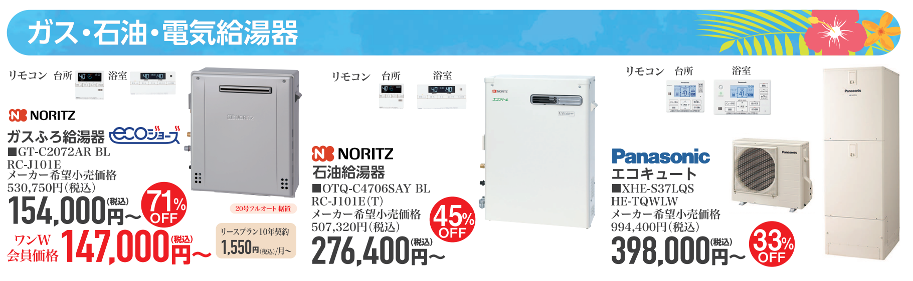 ②灯油給湯器・LP給湯器・電気温水器からガス給湯器への取替ご成約