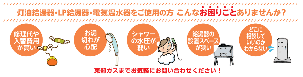 ガス給湯器はもちろん、石油給湯器やLP給湯器の買い替えも東部ガスで!!