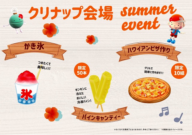 当日は、かき氷や冷凍パインなどの 冷たいスイーツでひんやり気分を楽しめるほか、 10組様限定でハワイアンピザ作り体験もご用意しています。 ご家族で楽しめるイベントとなっておりますので、 ぜひお気軽にご参加ください。
