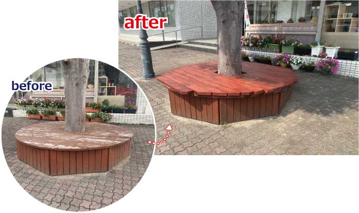 事務所前のベンチをリニューアルしました!!