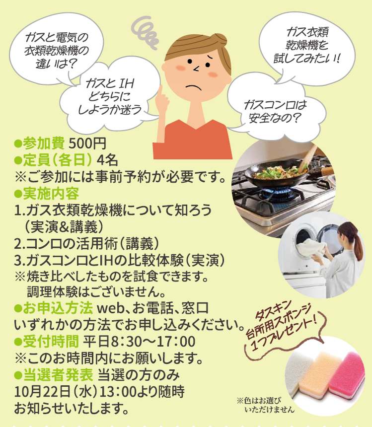今回のフェアでは、人気のガス衣類乾燥機やIH・ガスコンロの比較体験、 グリルの実演会など、実際に見て・触れて・体感できる企画をご用意しております✨ その他、ガス機器やリフォーム商材がお得に購入できるチャンス!