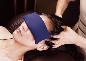 目や首のコリを優しいタッチでほぐします。