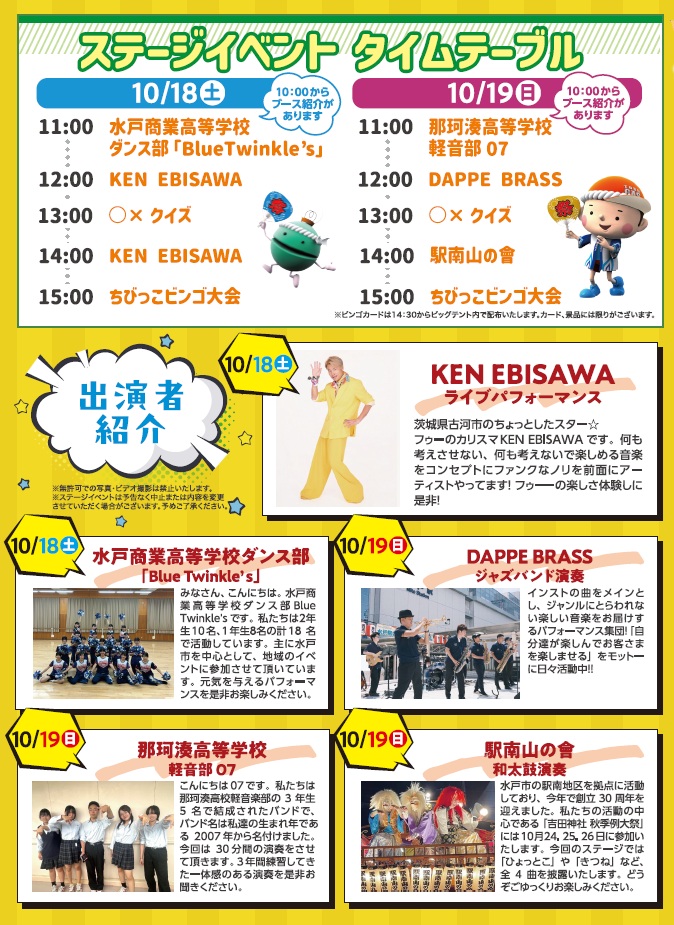 ※ステージイベントは予告なく中止する場合がございます。予めご了承ください。