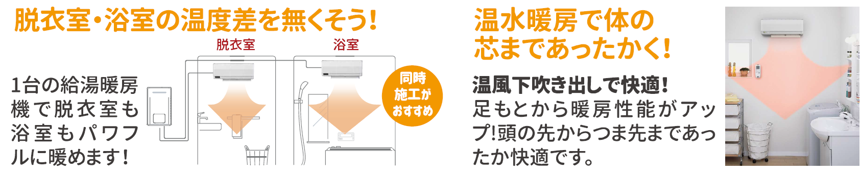この冬は、ガス暖房と浴室暖房乾燥機で家中を快適に、そして給湯器の買替えで安心・安全な暮らしを。