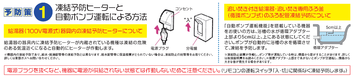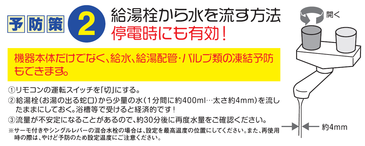 機器本体だけでなく給水・給湯配管・バルブ類の凍結予防にも有効