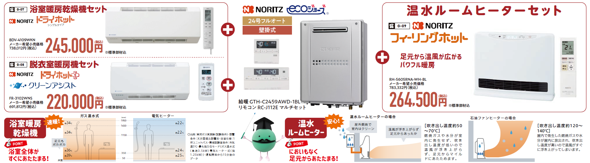 ※3つのセット商品は給湯暖房機の価格も含まれています