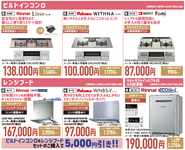その他、ビルトインコンロや給湯器、トイレのリフォームやインターホンなども取り扱っております!