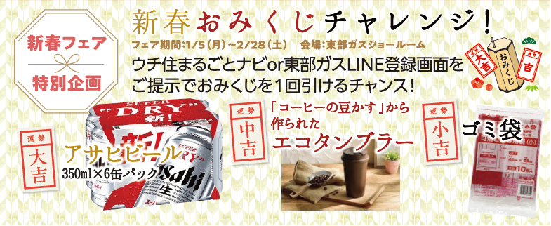 東部ガスLINE登録画面をご提示いただくと、おみくじを1回引くことができます!