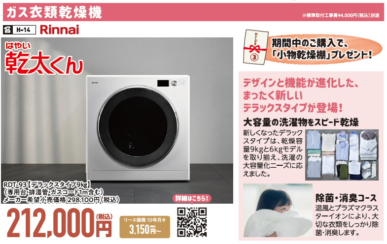 【お年玉③】ガス衣類乾燥機ご購入で、