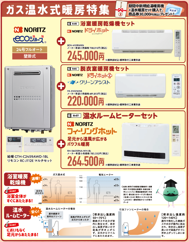 【お年玉②】新規で給湯暖房機+温水暖房セットご購入で、
