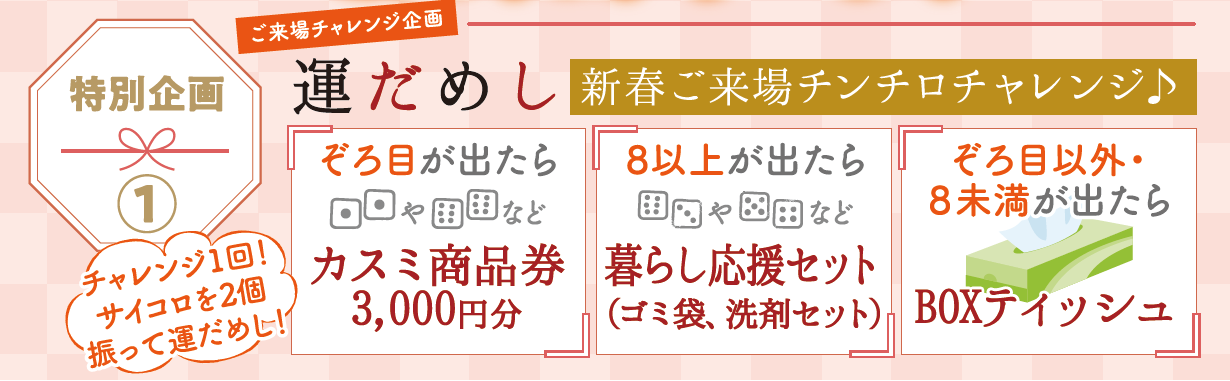 ご来場いただいた方限定★サイコロを2個振って運だめし!