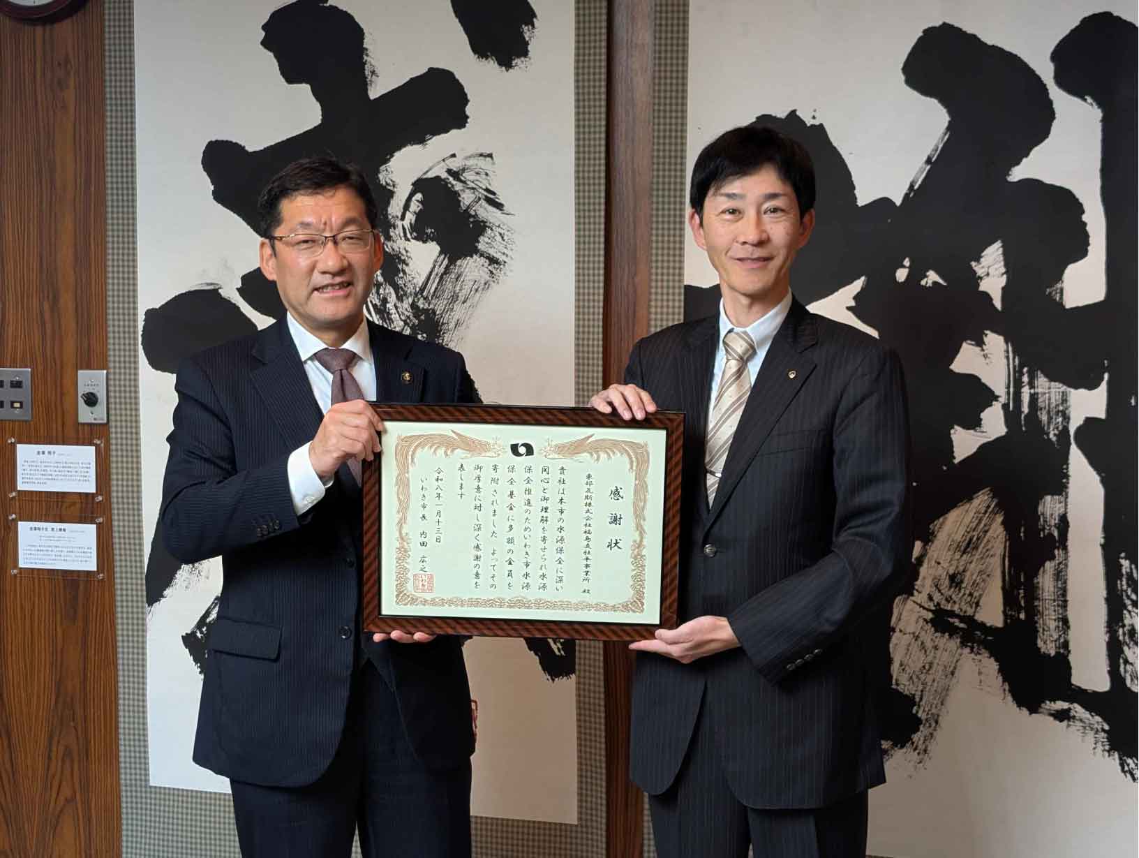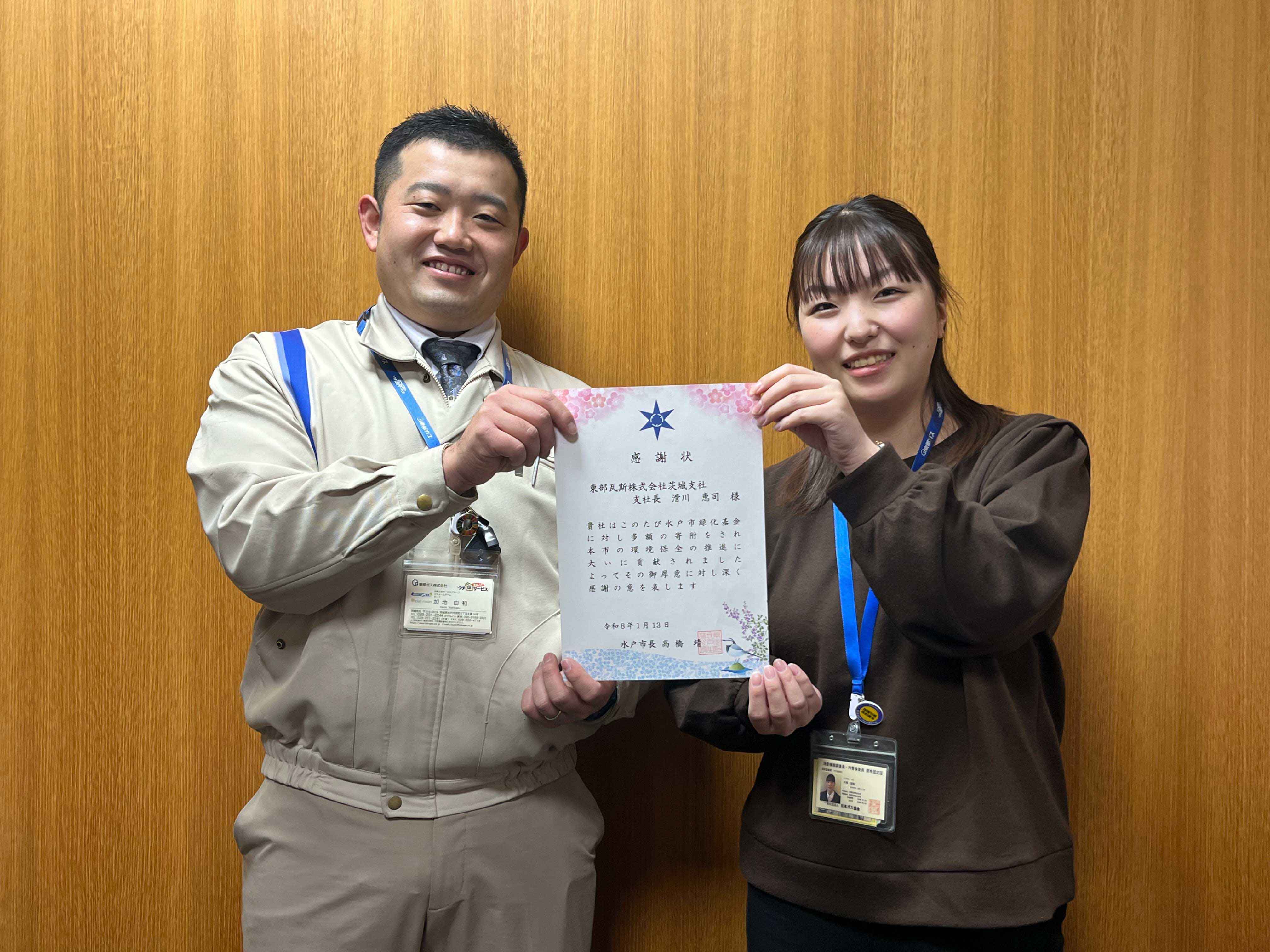 12月20日、当社福島支社ではお客さま大感謝祭チャリティー屋台・東部ガスバザー等の売上金260,000円を、郡山市『すこやか子育て寄附金』に寄附いたしました。