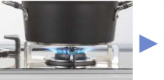 鍋のこげつきや異常な温度上昇を感知して自動で火が消えます。